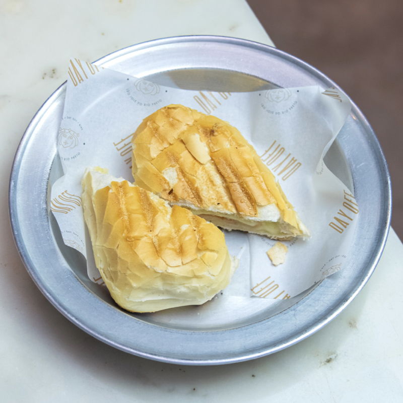 Pão francês, muçarela e peito de peru